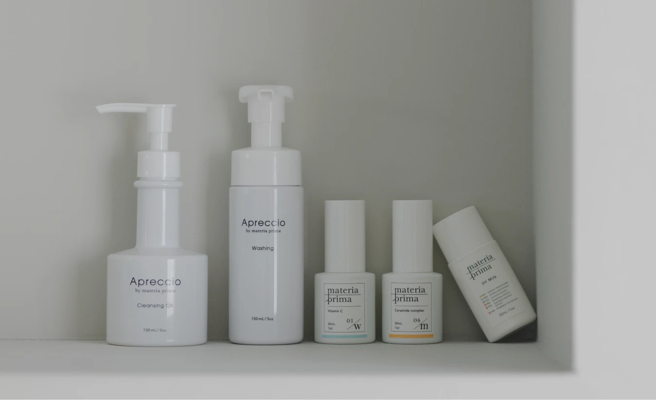 Apreccioでスキンケアの土台を整え、原液美容液を季節や肌状態に合わせて組み合わせることで、